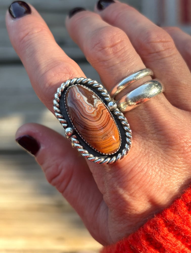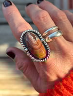 Large, gorgeous Dryhead Agate, sterling and fine silver with a heavy twist border.