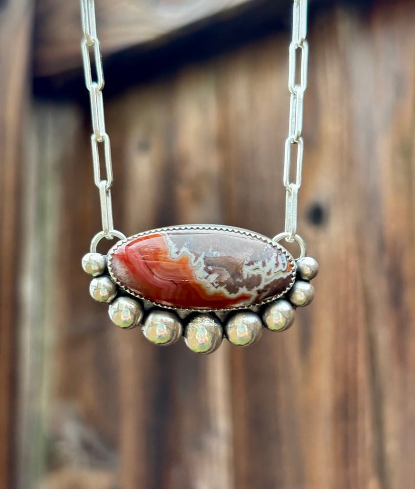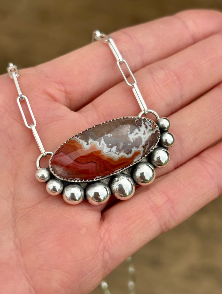 Gorgeous, high-domed Dryhead Agate, mined in Montana, set in sterling and fine silver.