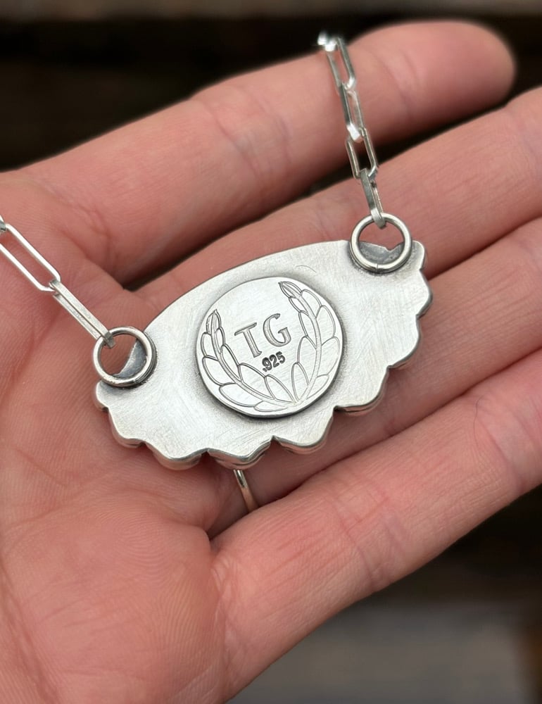 Necklace totals 16 inches in length, can be adjusted to make it shorter. Makers mark on back.