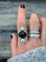 Onyx. sterling and fine silver. Ring measures 1 1/2 inches in length.