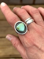 Gorgeous, high-domed Royston Turquoise, sterling and fine silver. (Bezel appears loose around stone in pic due to not yet being sized***)